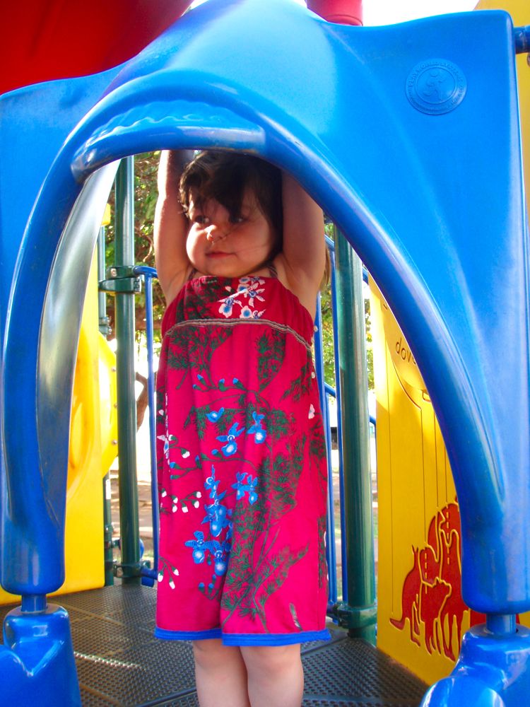 Evelyn at Maui playground Nice colors on the playground equipment. Evelyn fit right in.