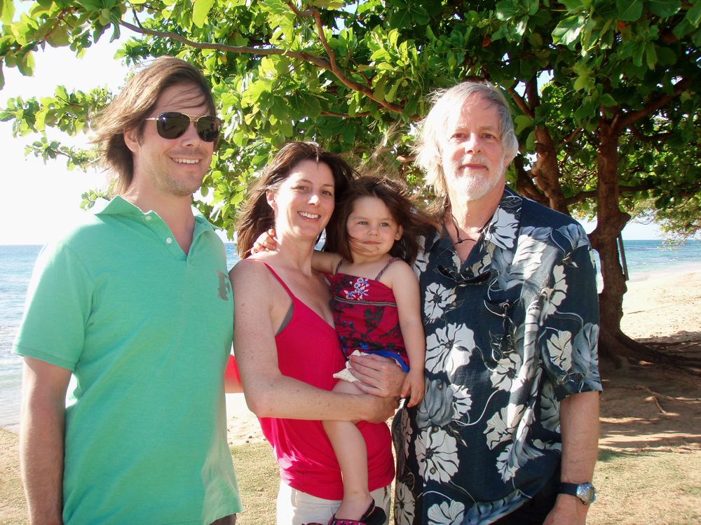 Vos family and granddad Brian Here's Patrick, Celeste, Evelyn, and me. Brown, brown, brown… gray! I'm pleased to be able to make just about everybody I pose with these days look much younger, by comparison.