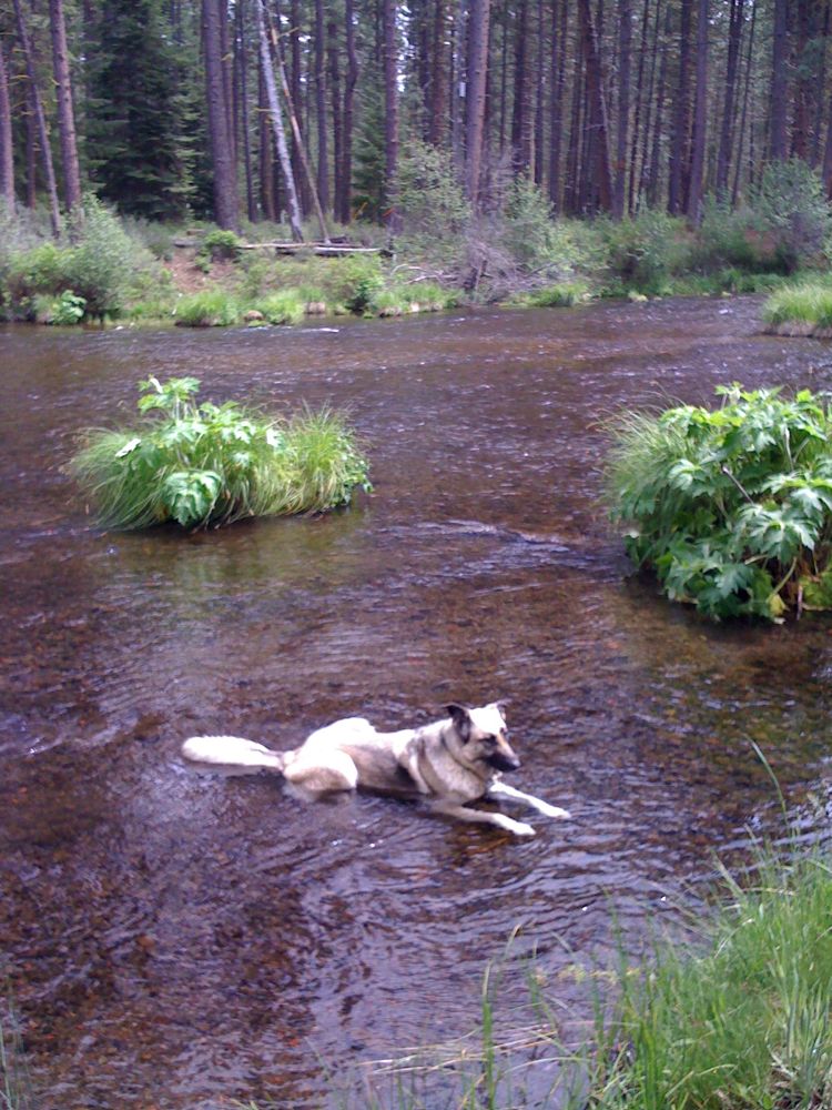 Nice, very nice. I can feel the flowing water, smell the Ponderosa pine, and have some fun watching Serena cool off in the stream.