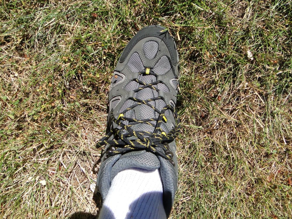 I took off the boots, put on the sandals, and carried the boots with me in the back pack — since they wouldn't fit under the seat along with all the other gear.
