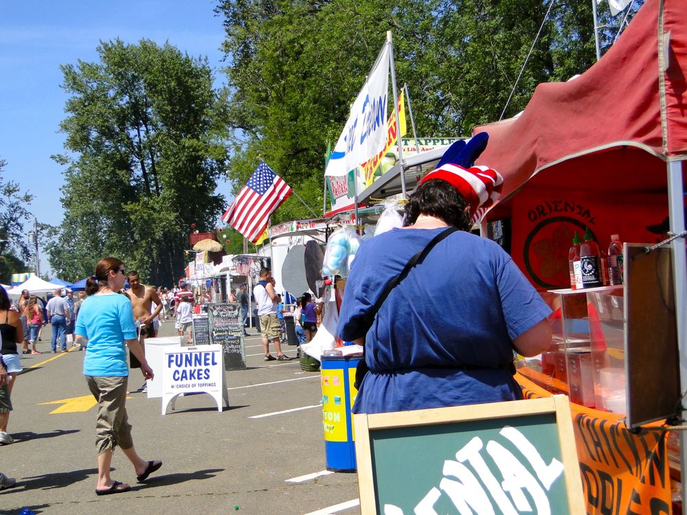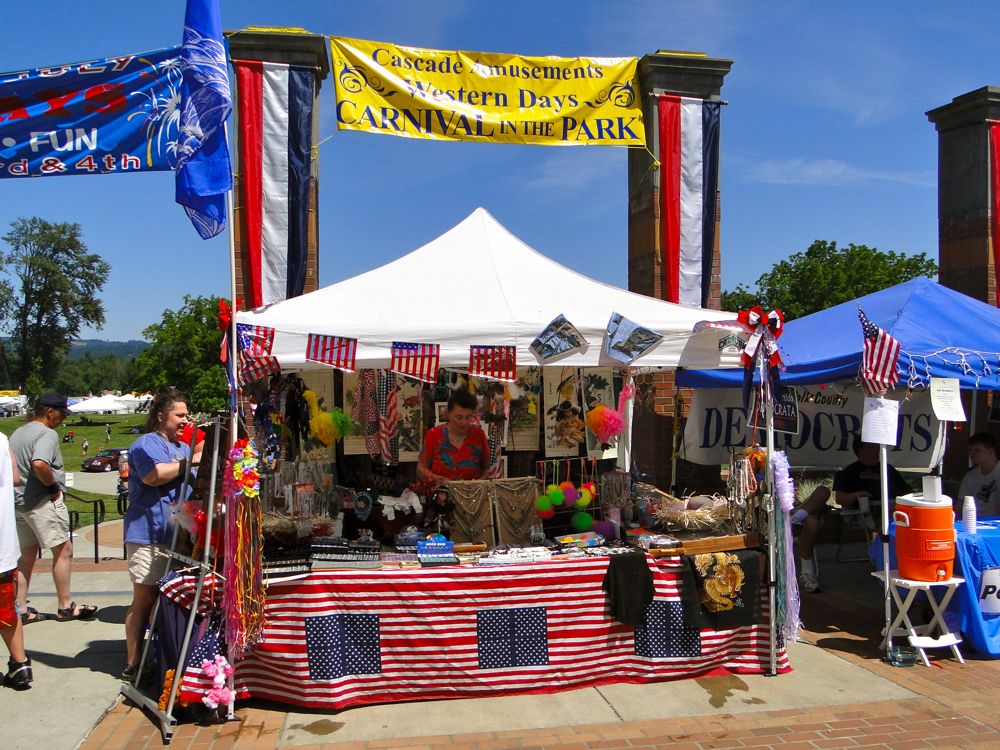 I love the bright Independence Day colors. And the appealing all-American tackiness of the booths.
