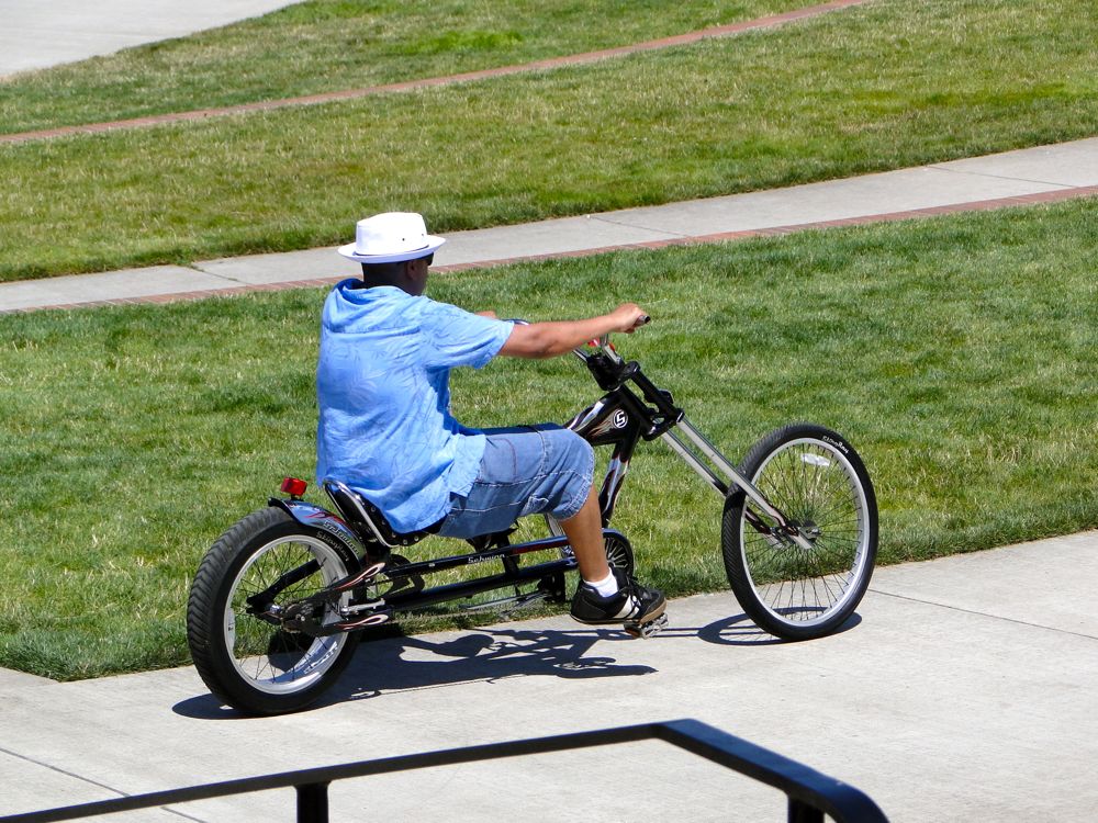 I didn't know that "lowriders" came in a bicycle version. This guy was cool. Later I saw him with two buddies, who also rode similar cruisin' bikes.