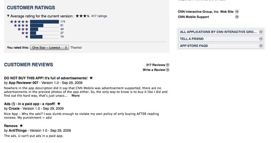 CNN has updated its own story about the app with a lame acknowledgment of all the criticism it's been getting about the ads. Thanks for the feedback; we're not changing a thing.