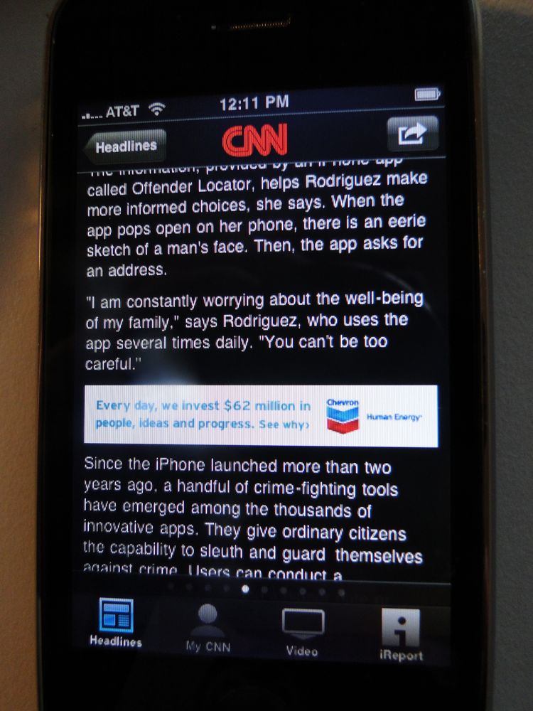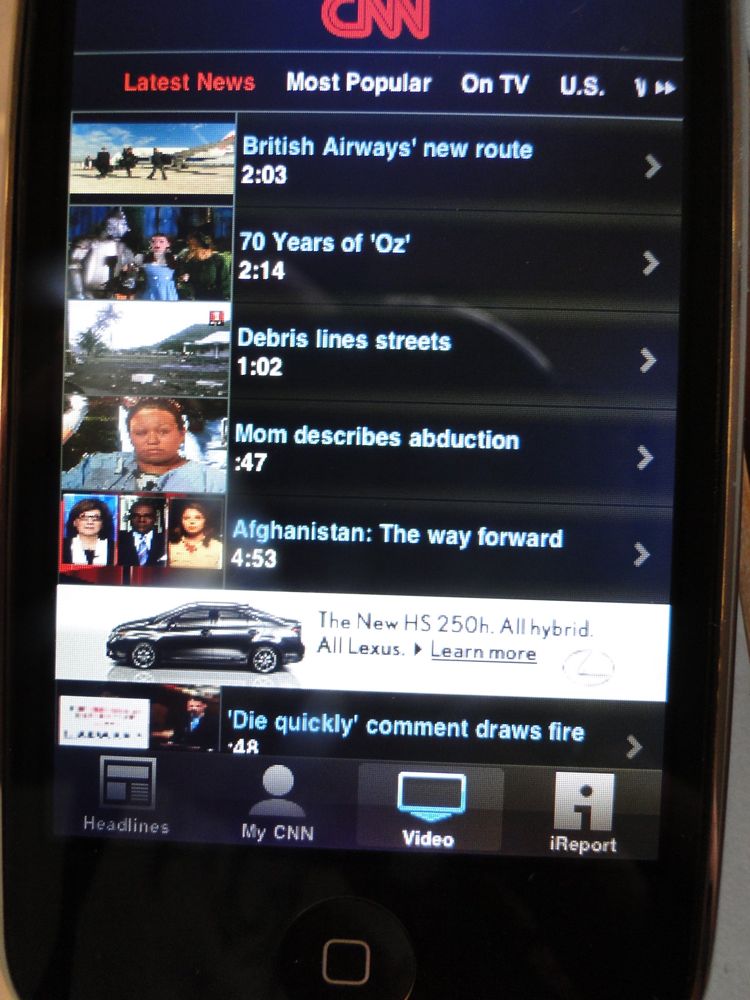 Yesterday I got excited when I heard about CNN's app for the iPhone and iPod Touch. I forked my $1.99 over and started playing around with it. At first I liked it.