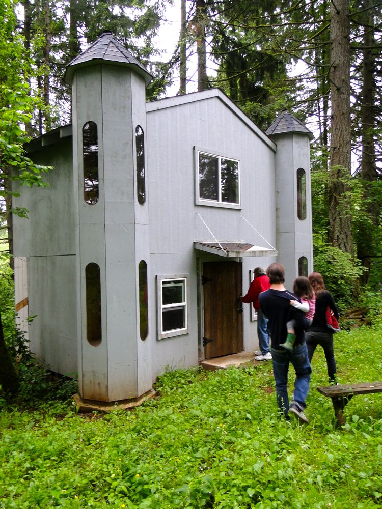 I was glad Evelyn saw our tree house before she set foot in the Beaton's own grandchild plaything — a marvelous Harry Potter'ish castle. Wow. When I was a kid I nailed two boards up in a tree all by myself. That was my playhouse. I want do-overs! (If reincarnation is real, maybe I'll get my chance.)