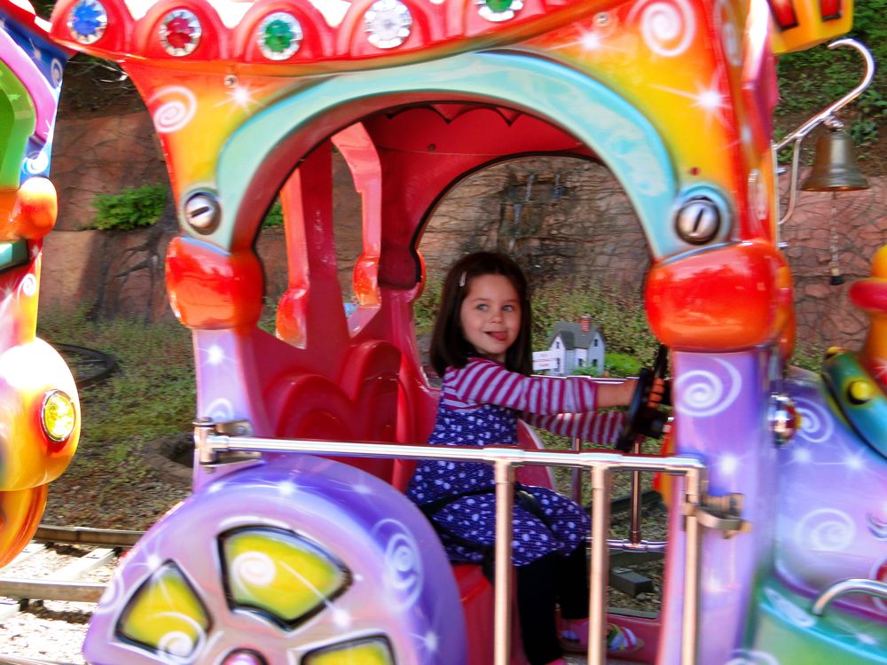 The Enchanted Forest kiddie train was another Evelyn favorite. This ride she got to sit in the very front and drive the engine. Just like Michael Jordan, when she's concentrating, she sticks her tongue out.