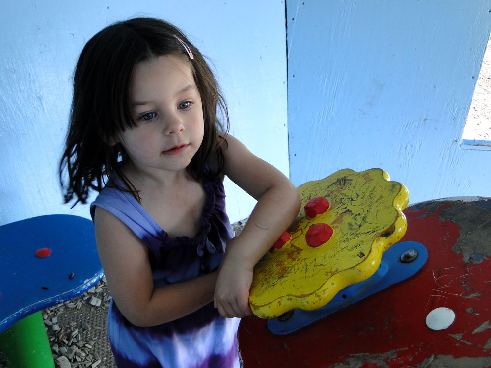 Capping off the day, we went to the playground near the Bush Park Art Museum. Evelyn was into this simple well-used toy.