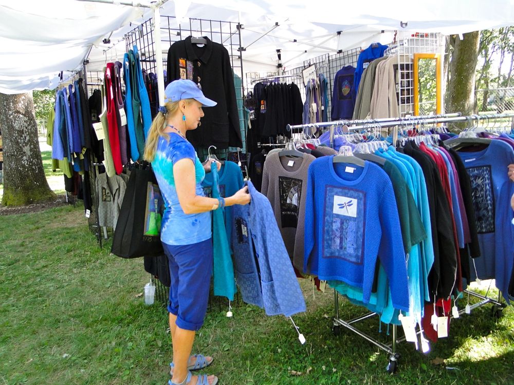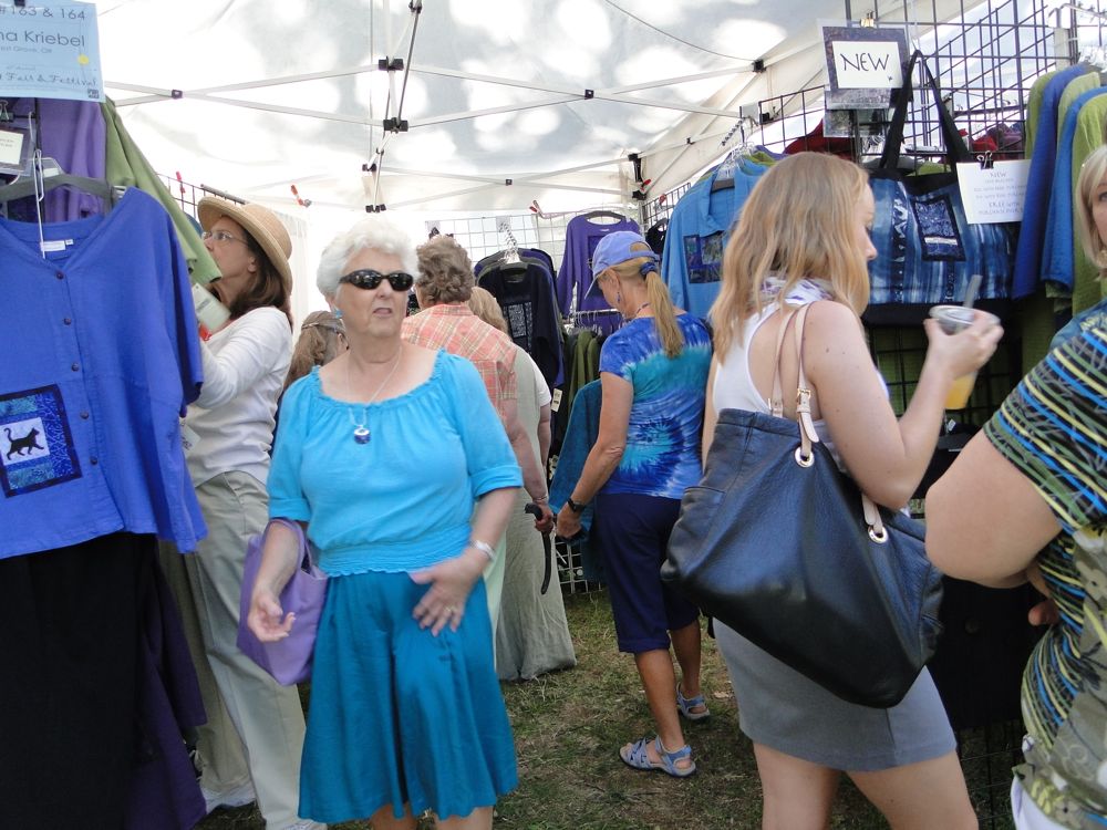 One patron of the arts, Brie Kriebel's wearable variety, was fired up as soon as she reached the booth. Since what Laurel was wearing perfectly matched what she was holding, I had a premonition that a VISA charge was in our future. (I was right.)