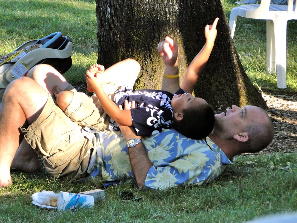 A little ways below us, a man and his son (I assume) were enjoying a bonding moment, looking at the branches of the towering oak they were lying under. Priceless. Well, $5 for the man, free for children under 12. I'd say they got a good deal.