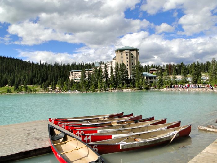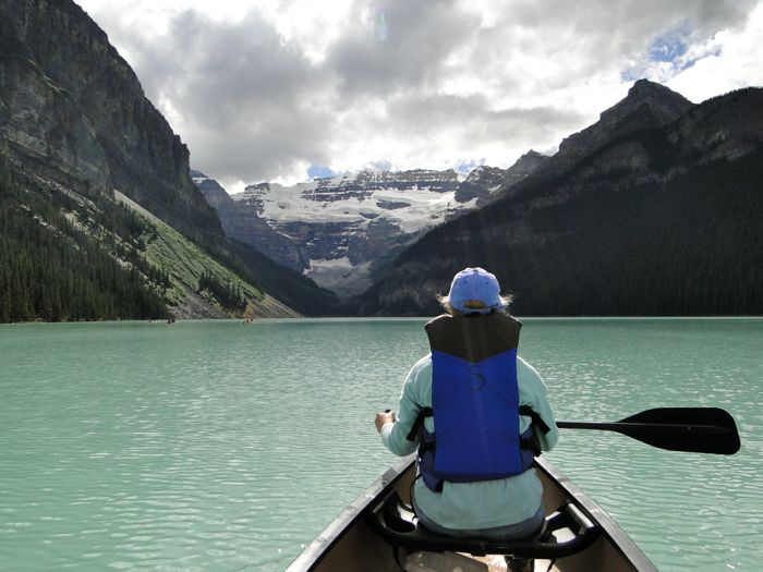 When we got to beautiful Lake Louise, Laurel had the bright idea of renting a canoe for half an hour.The majestic Fairmont Resort is at one end of the lake.