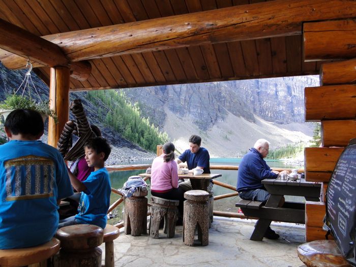The Lake Agnes teahouse. Geez, it's easy to love Canada. In the United States there'd be an ugly Starbucks franchise on the shores of Lake Agnes, not a teahouse where hikers pour tea and coffee from stainless steel decanters. Very civilized.