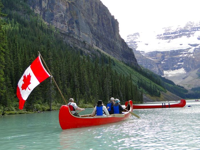 As we approached the dock after our half hour was up, a guide was taking tourists out in a Canadian flag-bedecked canoe. I would have sung the national anthem if I'd known the words, and if this wouldn't have wrecked the serenity of Lake Louise, which it would have, for sure.