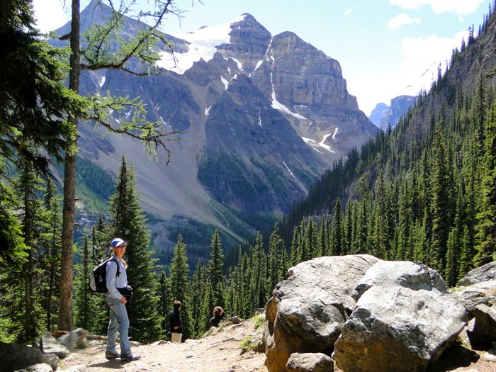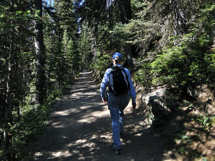 So even after driving 45 minutes or so, it took a while for my body to get used to the idea of climbing 1,300 feet in 2.2 miles. This is a fairly mild slope at the beginning of the hike, which begins past the Fairmont, on the shore of Lake Louise. From here on, it's all uphill — from about 5,700 feet to 7,000 feet.