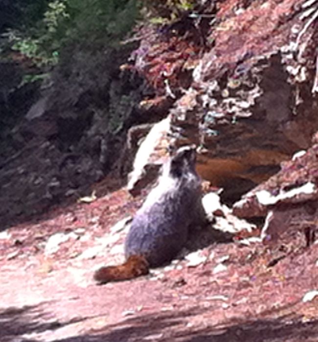 Laurel decided to hike further up the trail than my tired legs felt like going. She saw a Marmot along the way, which stayed still long enough for her to fire up her iPhone camera.
