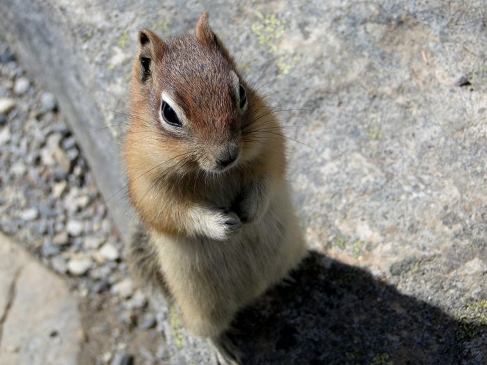 Sitting on a lakeshore rock, eating a peanut butter and jelly sandwich that we'd brought along, an incredibly cute forest creature begged for a bit of whole wheat bread. I answered his/her prayer, while my environmentalist wife kept saying, "You shouldn't feed them! It's unnatural!" Agreed. But I couldn't help myself.