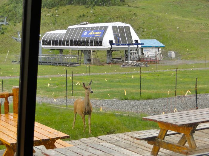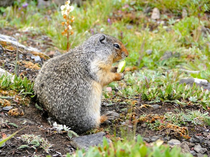 Waiting for the bus to arrive, cup of coffee in hand, we saw the largest animal on our excursion. As we walked along Laurel had spent a lot of time looking through binoculars at rocky slopes for bears, mountain goats, or any other creature larger than a ground squirrel.