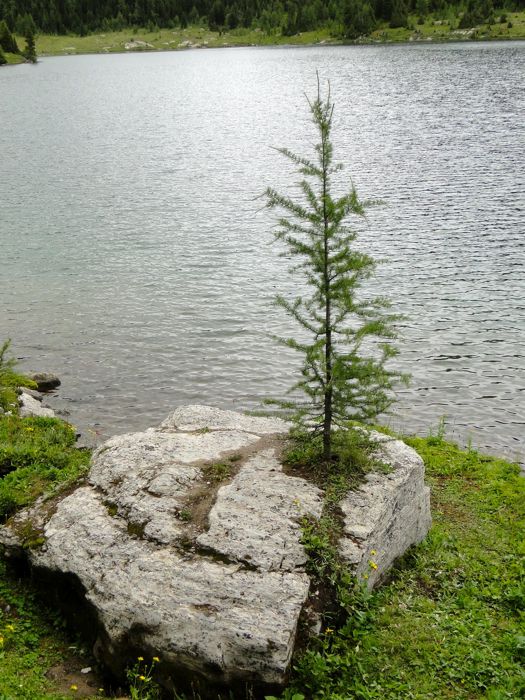 I love how nature does a better job at designing Japanese gardens than the Japanese do. (This determined tree is on the shore of Laryx Lake.)