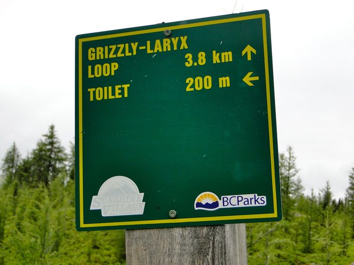 We've been impressed with the neatness and cleanness of Canada. Things just seem better organized and better maintained than in U.S. parks. For example, the trail signs. They're all neatly lettered on metal. No rotting, fractured wood like you see in Oregon, often with something crucial missing — like the direction arrow or distance. Canada rules when it comes to public services, from the admittedly little we've experienced.