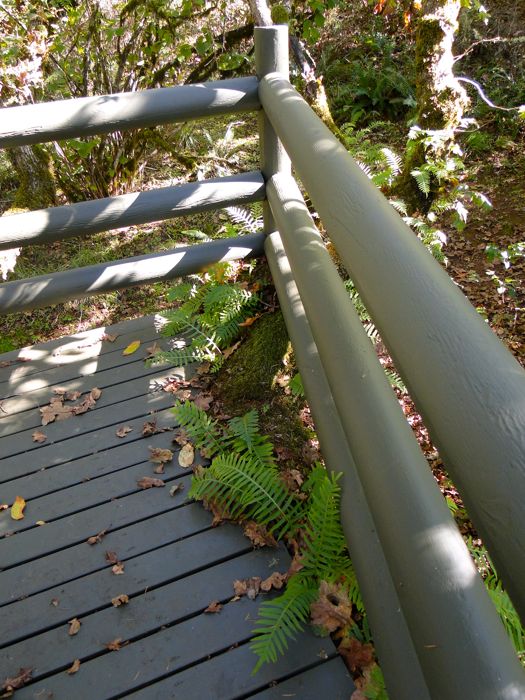 You can see that the ferns are happy living beneath the tree house. There are two coats of stain on the underside of the boards and peeler core supports. I also used a foam brush to get stain between the boards, which I've never done on a deck before.