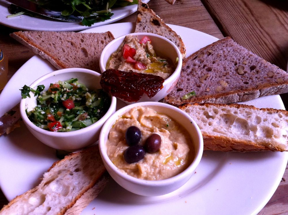 Whenever we eat in the Hollywood area, I'm reminded of how crappy the vegetarian dining options are in Salem, Oregon (where we live) compared to the much more health conscious southern California restaurant scene. Here's the hummus plate with a tasty variety of bread that we got at Le Pain Quotidien. Loved it!