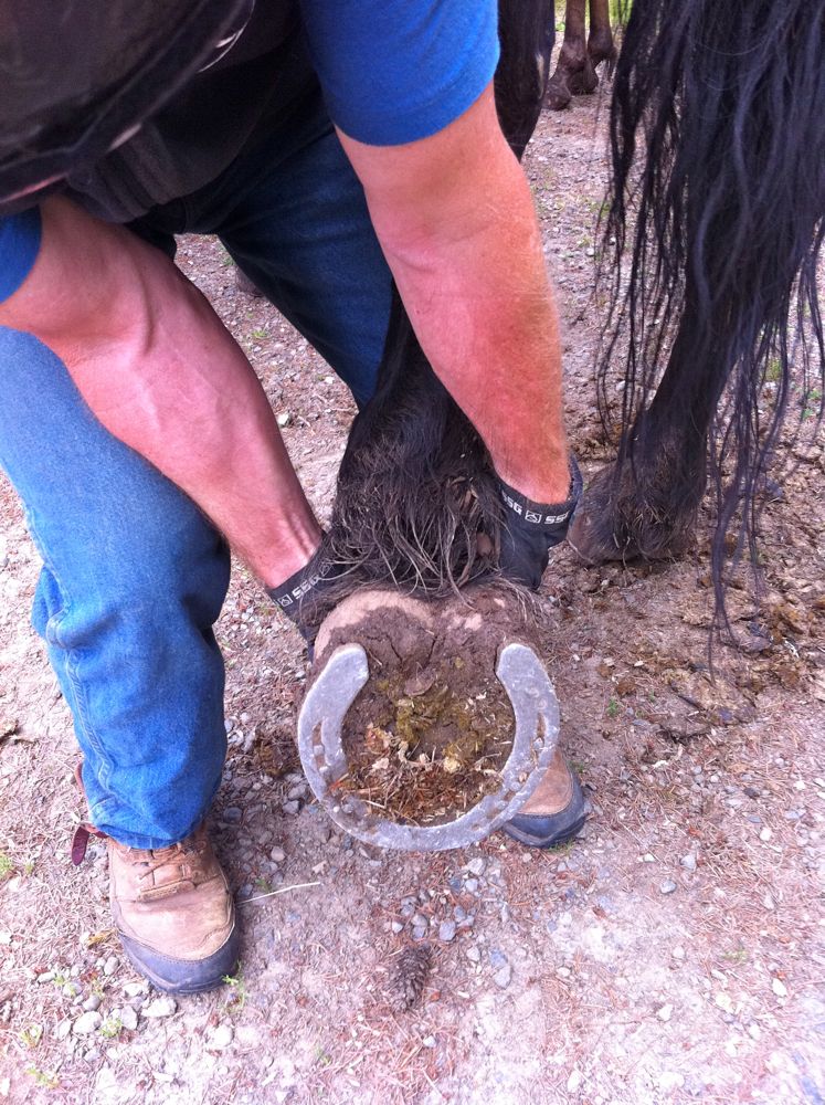 After the ride, Jahn kindly picked up Molly's leg, something I'd be reluctant to do, so I could take some photographic evidence of her massive hoofprint.
