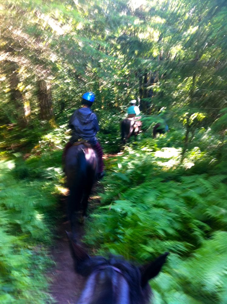Today we took advantage of a Groupon deal and went on a 2 1/2 hour ride with two women who came down from Portland. The four of us, plus Jahn and his young wrangler Elijah, enjoyed walking, trotting, and cantering our way along some beautiful trails.