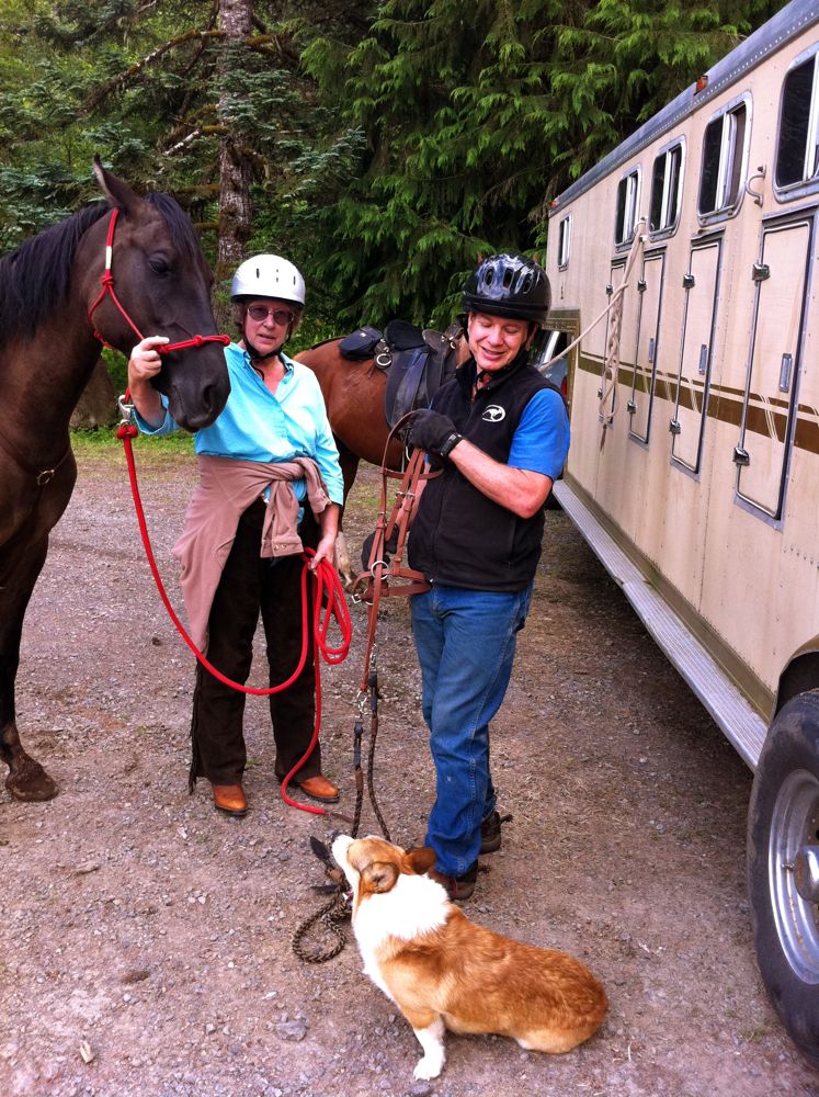 Below is Jahn with one of the Portland riders. This is my kind of horse riding: you drive up to the parking area, and your horse is already saddled. Then, after a brief lesson and some riding tips, you head off on a fun ride through an Oregon forest. When you're done, Jahn and Elijah handle all of the afterride chores.