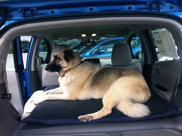 But today I focused on a query assigned to me by Laurel, my wife. "WIll our dog, Serena, comfortably fit into the Nissan Leaf electric car that we're poised to buy?