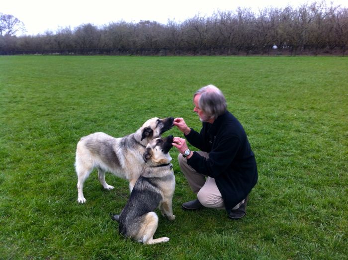 (In my light brown and black attire, Laurel thought I blended harmoniously with the dogs, though my head fur is grayer than theirs.)