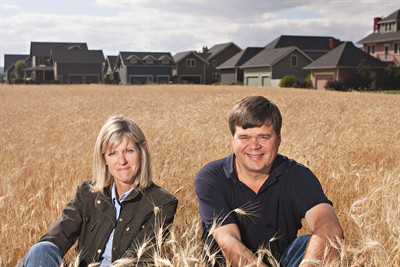 Nice. Here they are in an acre of wheat they planted. Now the enterprise has evolved into a Village Farm maintained by Edwards Addition residents, complete with Facebook page (of course).