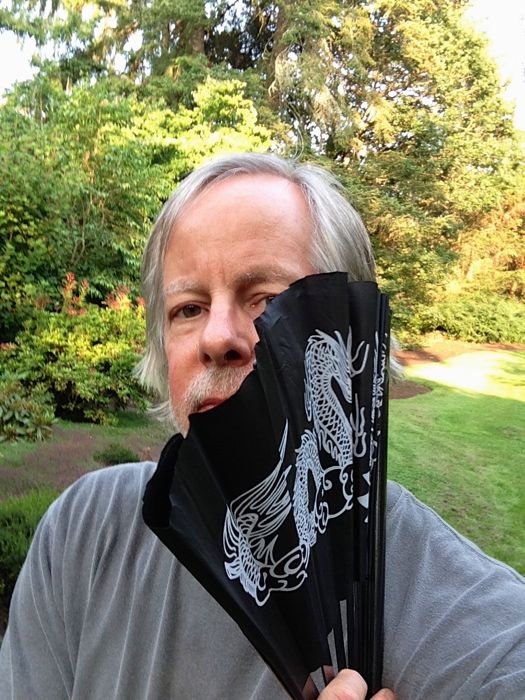 However, when I had a photo of me and my new fan taken by a Statesman Journal SJPix photographer while standing in the middle of a front-page background mock-up, I told the guy "Just a second; I need to channel my inner Geisha."