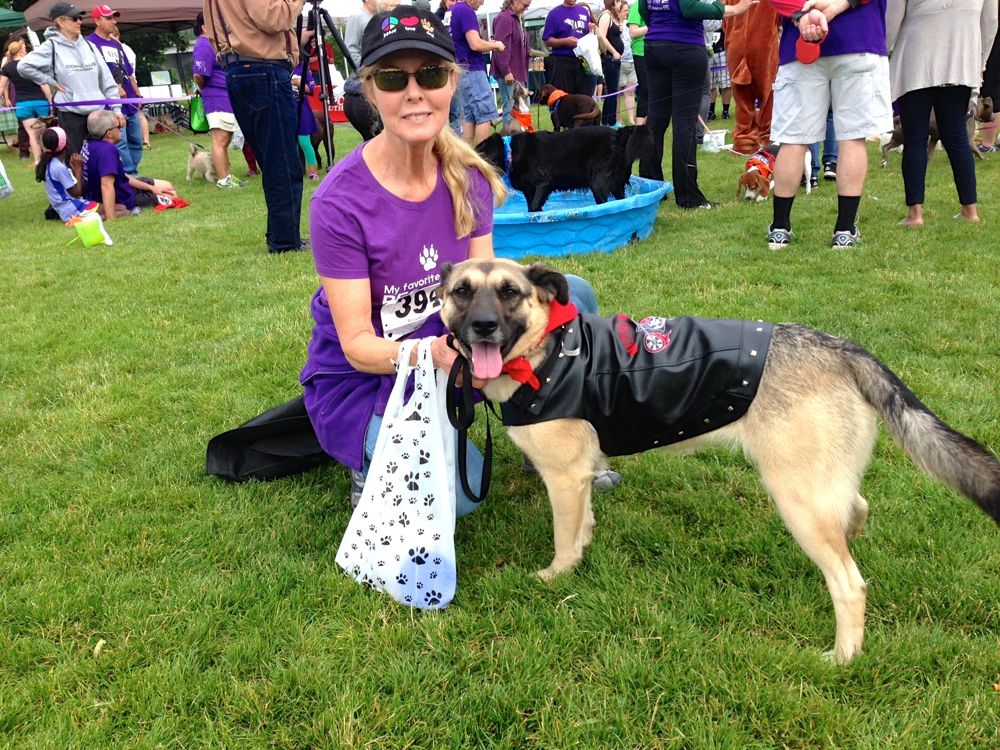 Back in Salem, here's Laurel and Zu Zu at this year's Willamette Humane Society Mutt Strut. Zu Zu is wearing her biker outfit.