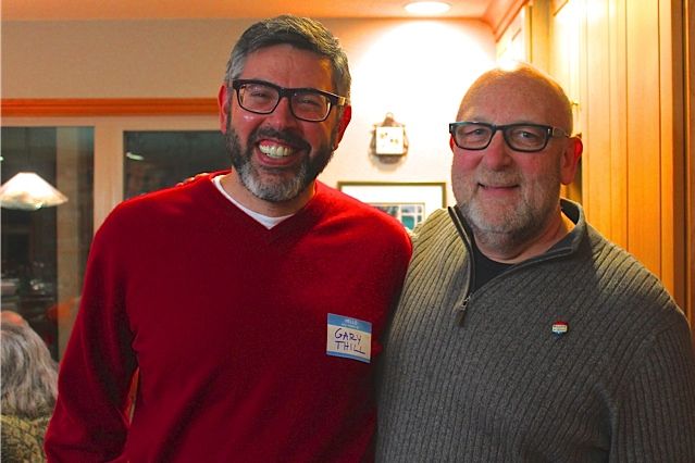 Carl introduced his partner, Gary Thill, on the left. (Photo was taken by Helen Caswell.) He related how they got married when Multnomah County briefly allowed this some years back. Then their marriage was "annulled" by same-sex marriage being termed illegal in Oregon.