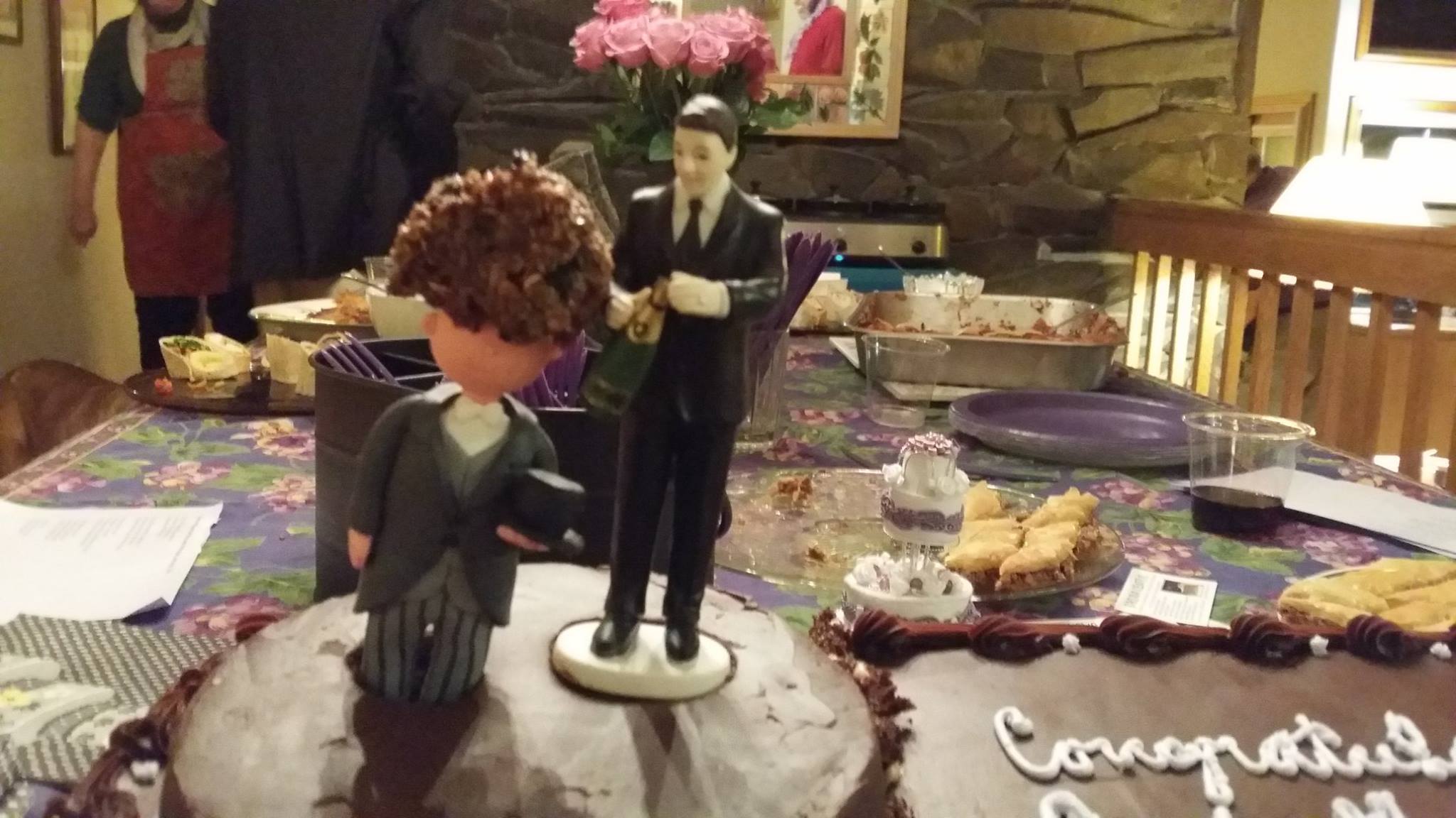 Laughter. Great mostly vegetarian food. Interesting people. A gay-themed wedding cake.