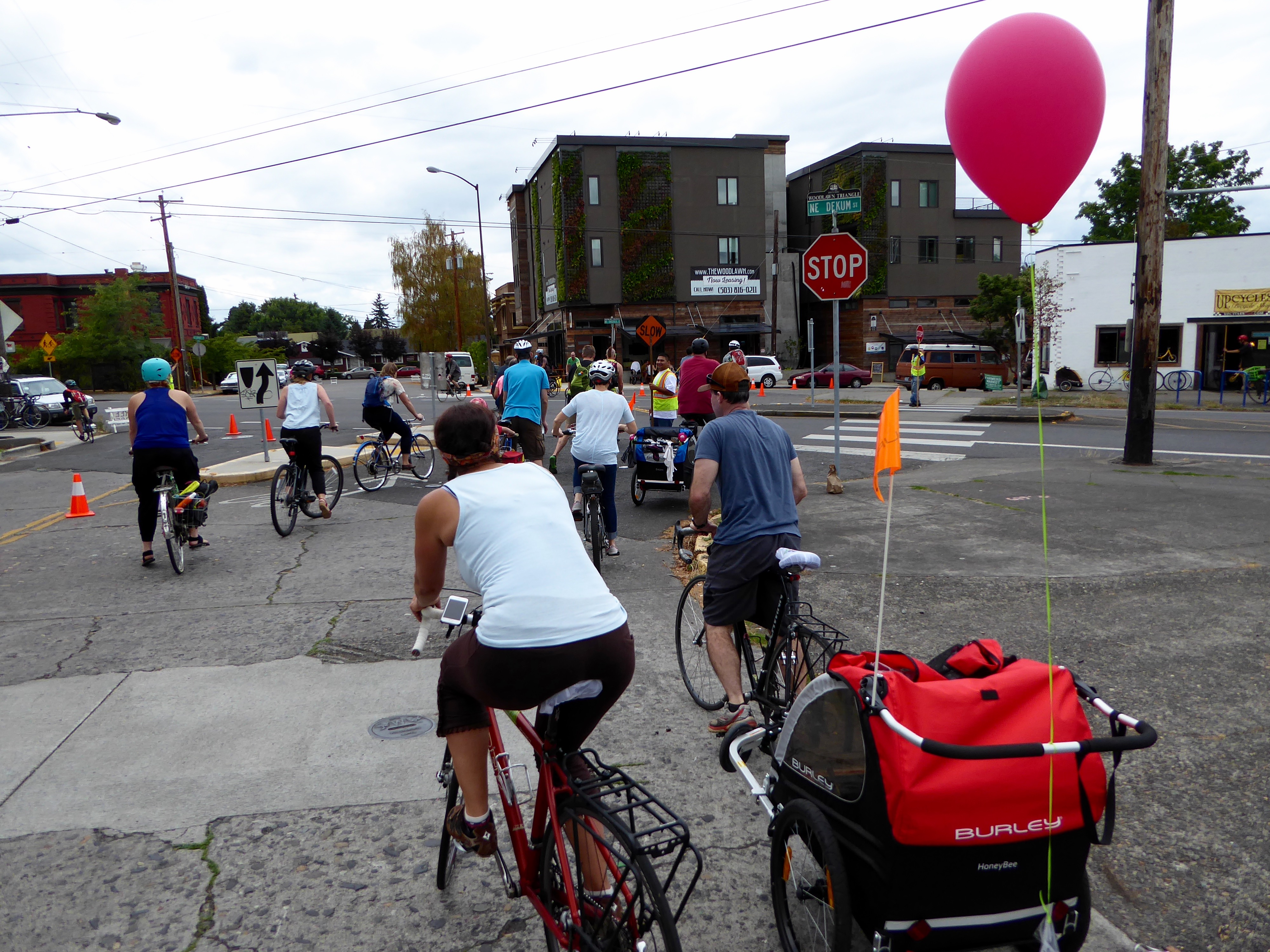 The whole vibe of Portland's Sunday Parkways is about active transportation, getting out of your car and biking, walking, skating, whatever.