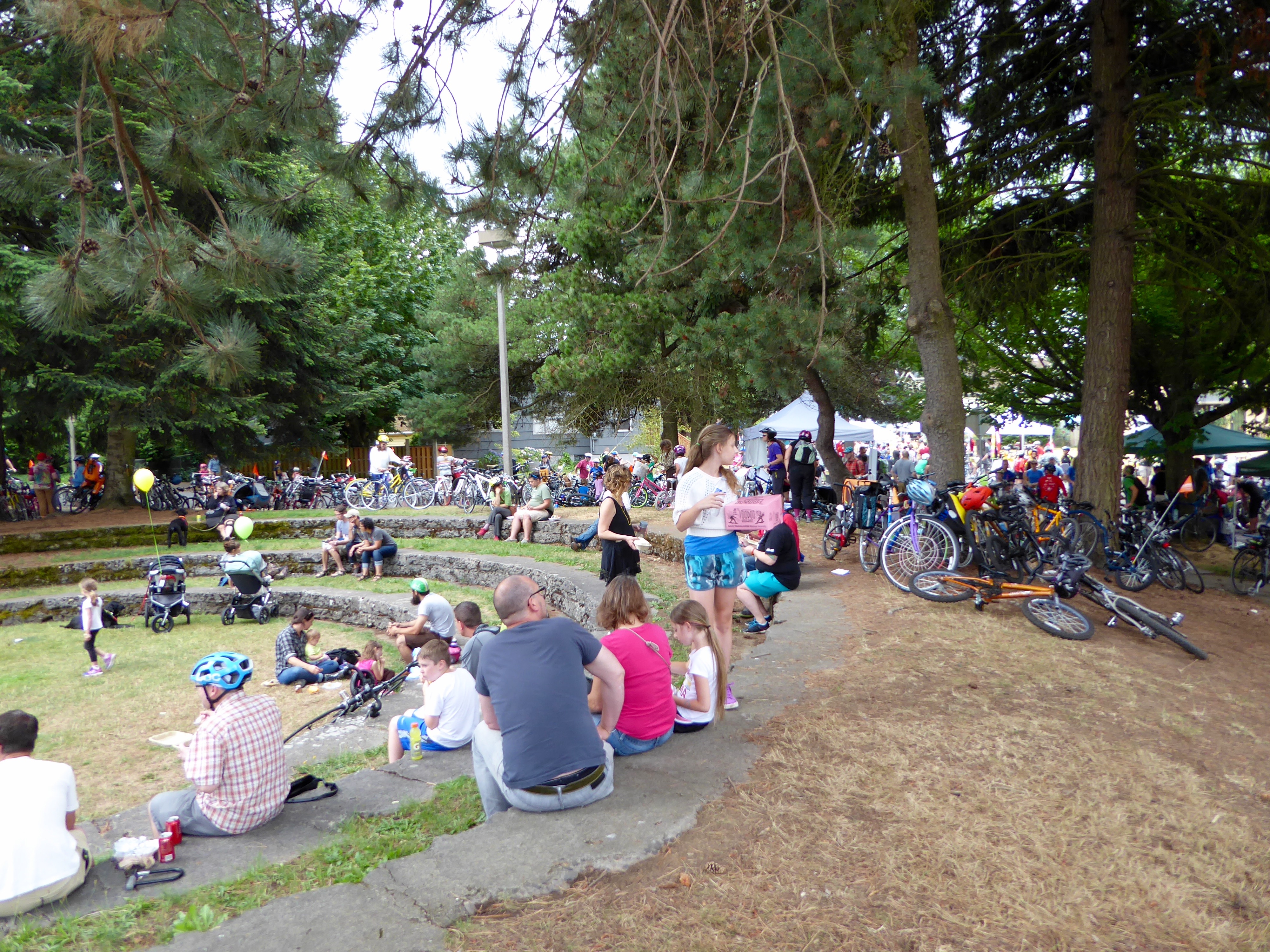 At the Portland Sunday Parkways event there were opportunities to sit down and listen to music, people-watch, or whatever. However, this was the payoff after riding your bike a mile or two to one of the four parks along the open streets route.