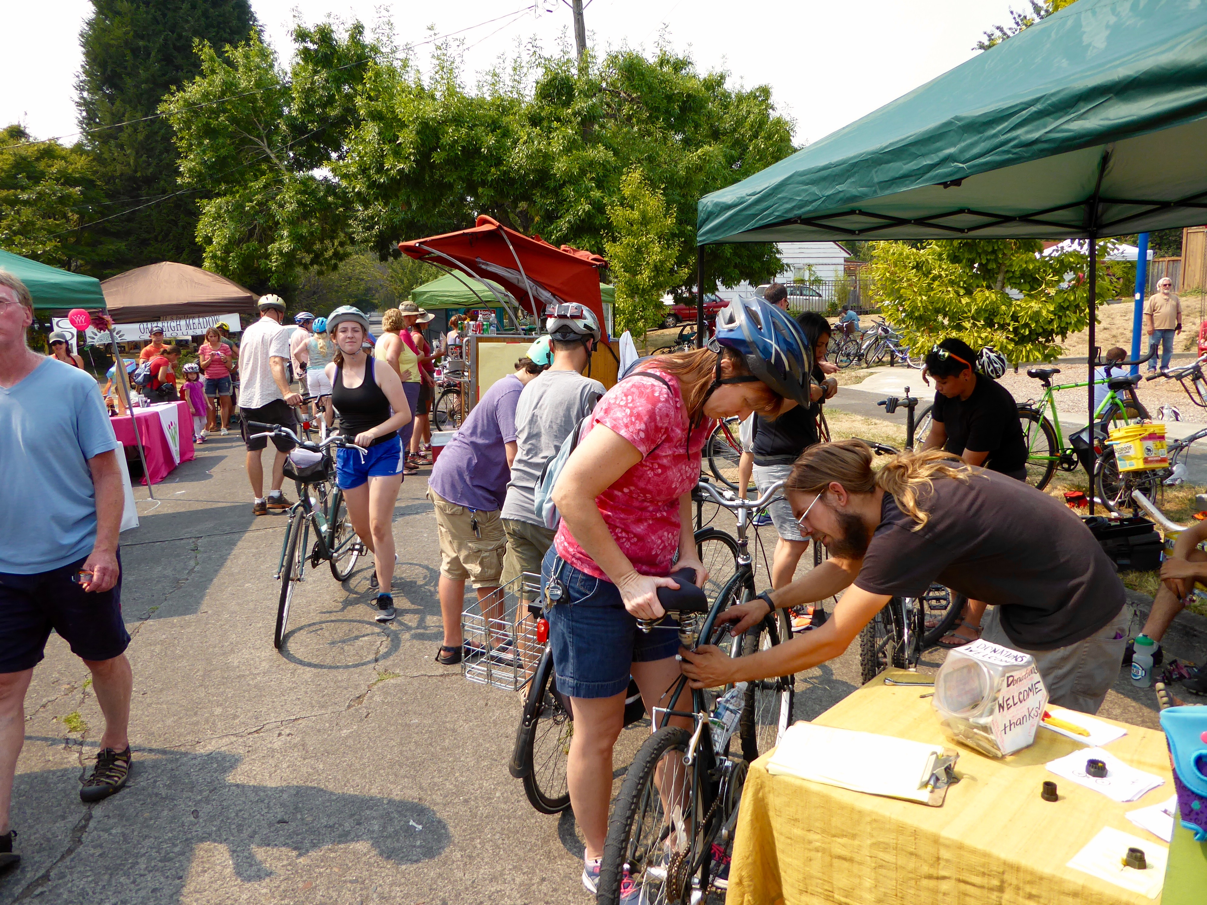 There's a wonderful feeling of community that pervades Portland Sunday Parkways. This booth offered free bicycle repairs, with donations accepted. Somehow this event had a small town feel, even with thousands of participants, because of how relaxed and friendly people were.