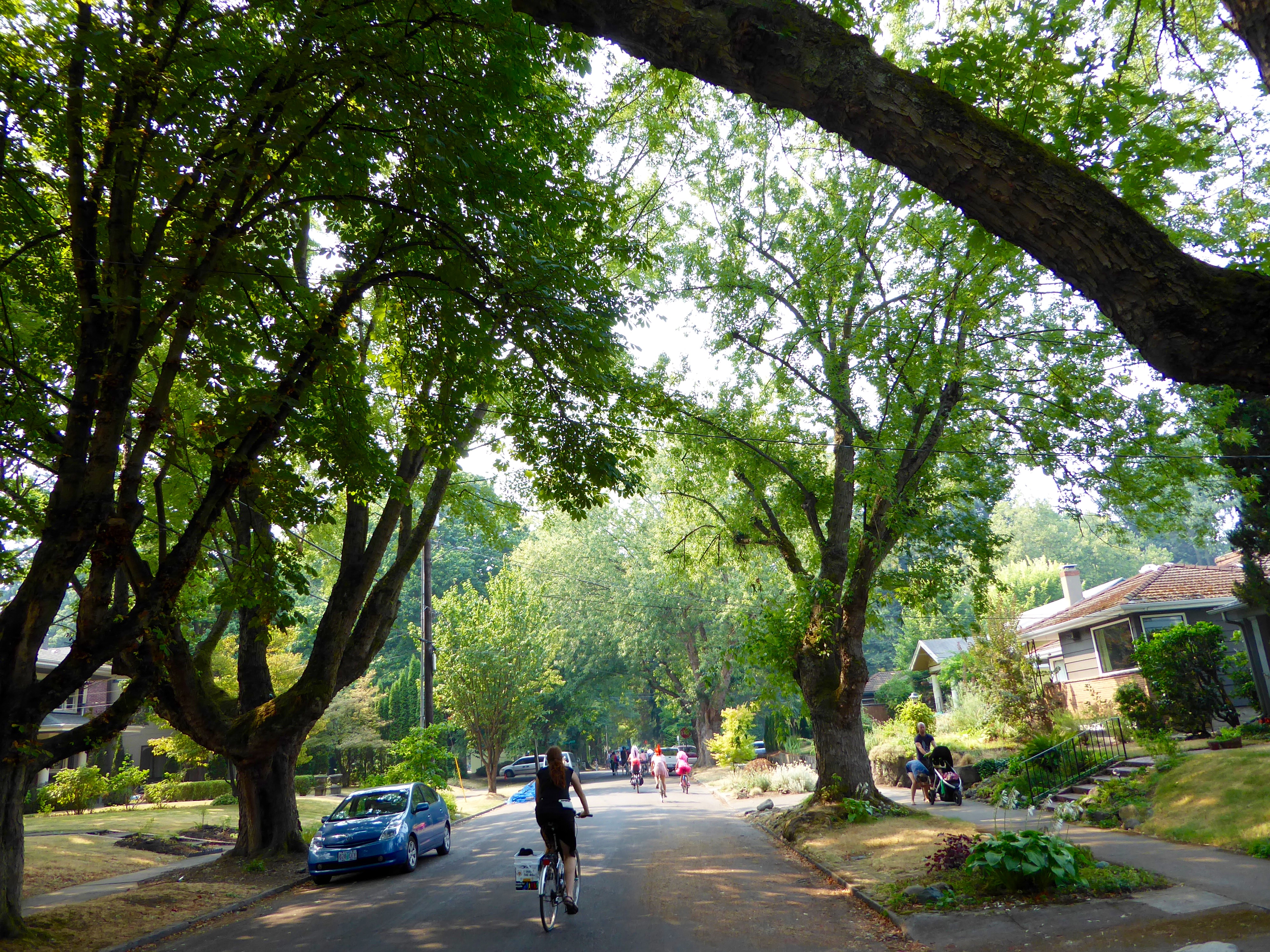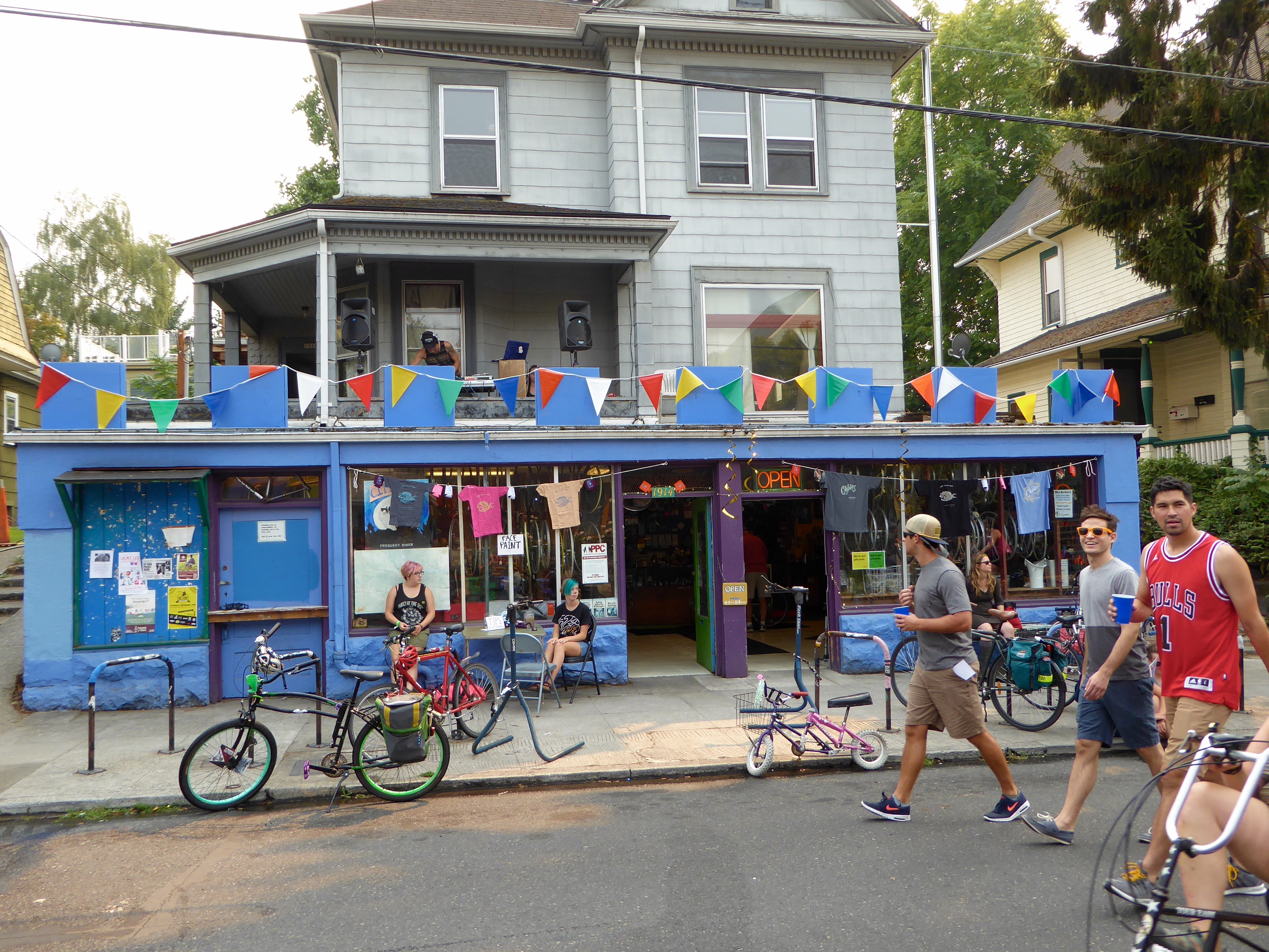 I'm not saying that Salemians aren't also relaxed and friendly — just that there is a certain Portland vibe that is very appealing. Less uptight than Salem. The Portland Sunday Parkways routes mostly go through residential areas. Residents are out on their front lawns and porches, having mini block parties, singing, playing music, handing out free water and lemonade, waving to passers-by.