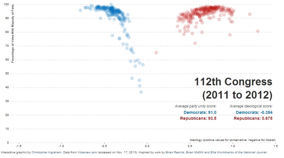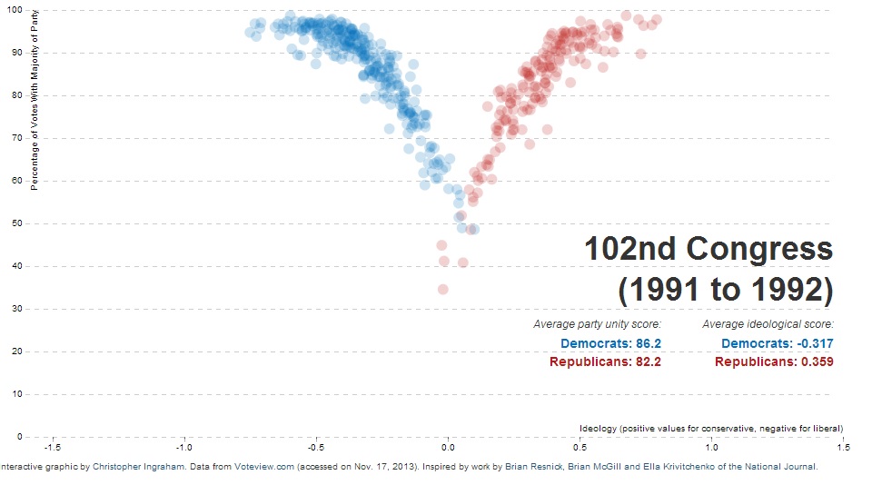 It's cool how this chart looks like the wings of a bi-colored bird. Because back then, members of Congress could actually get together and agree on things in a bipartisan fashion.