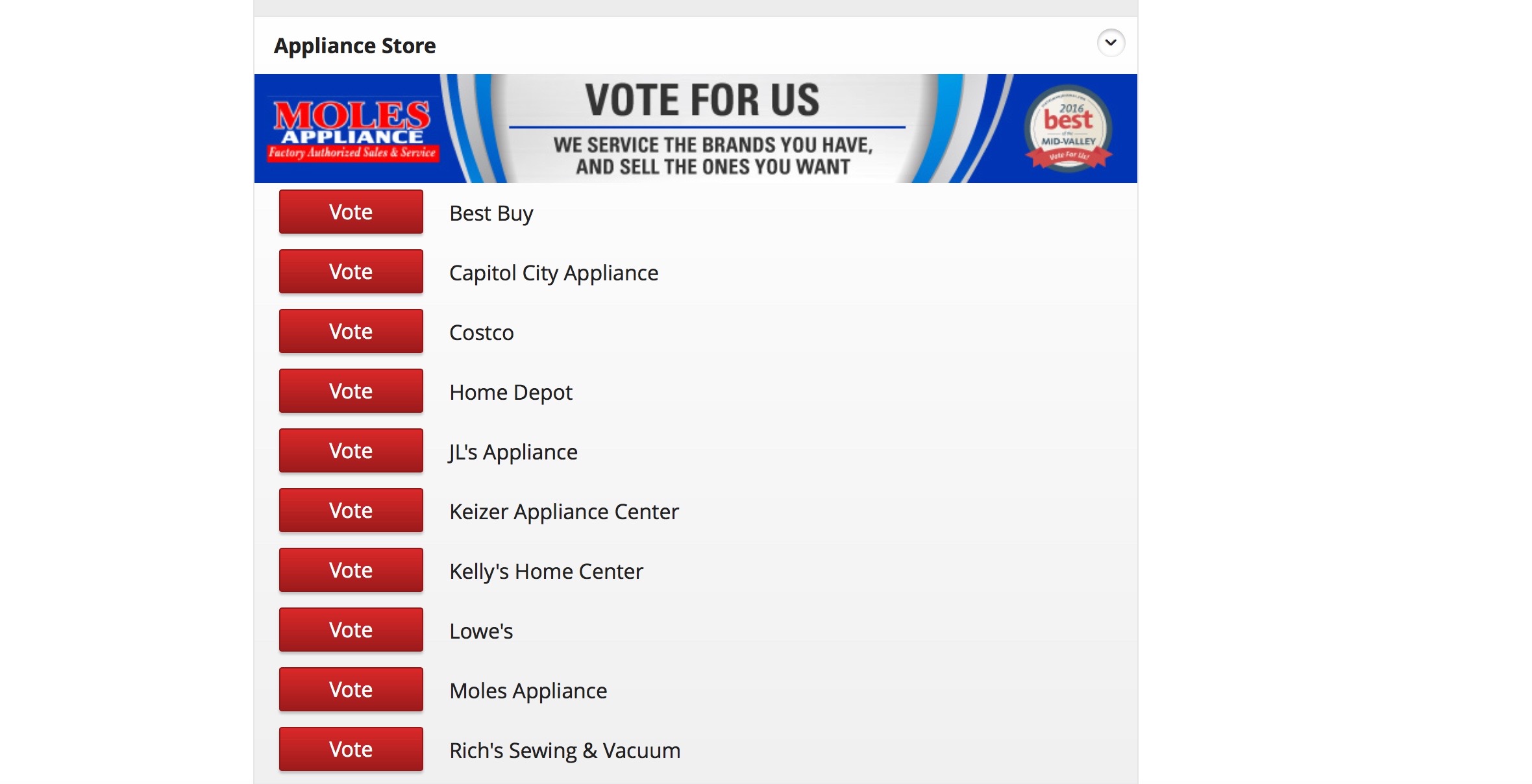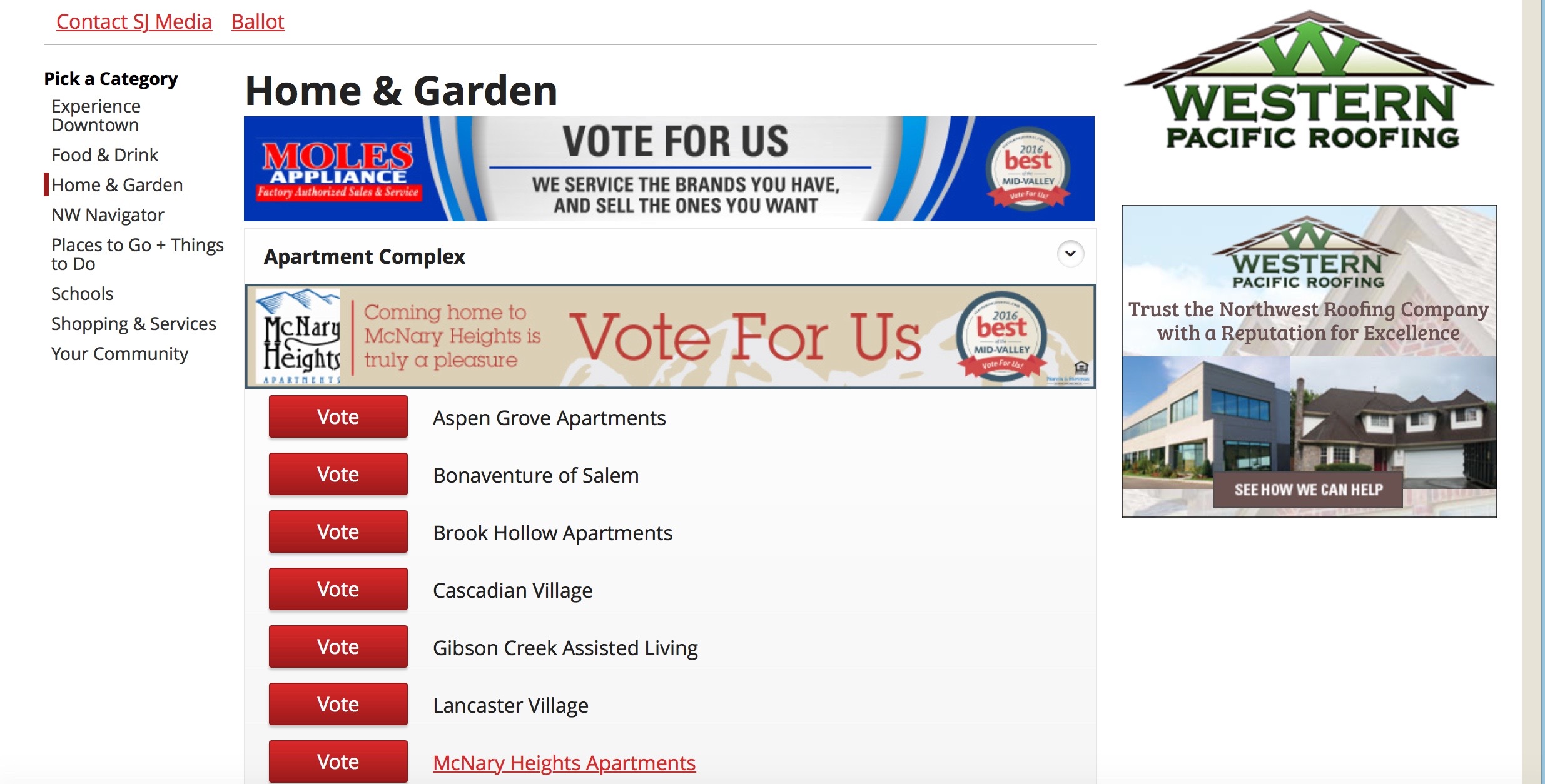 The biggest winner in the Best of the Mid-Valley contest has to be the Statesman Journal itself. The newspaper sells ads that appear with the category being voted on. Here's a few 2016 screenshots.