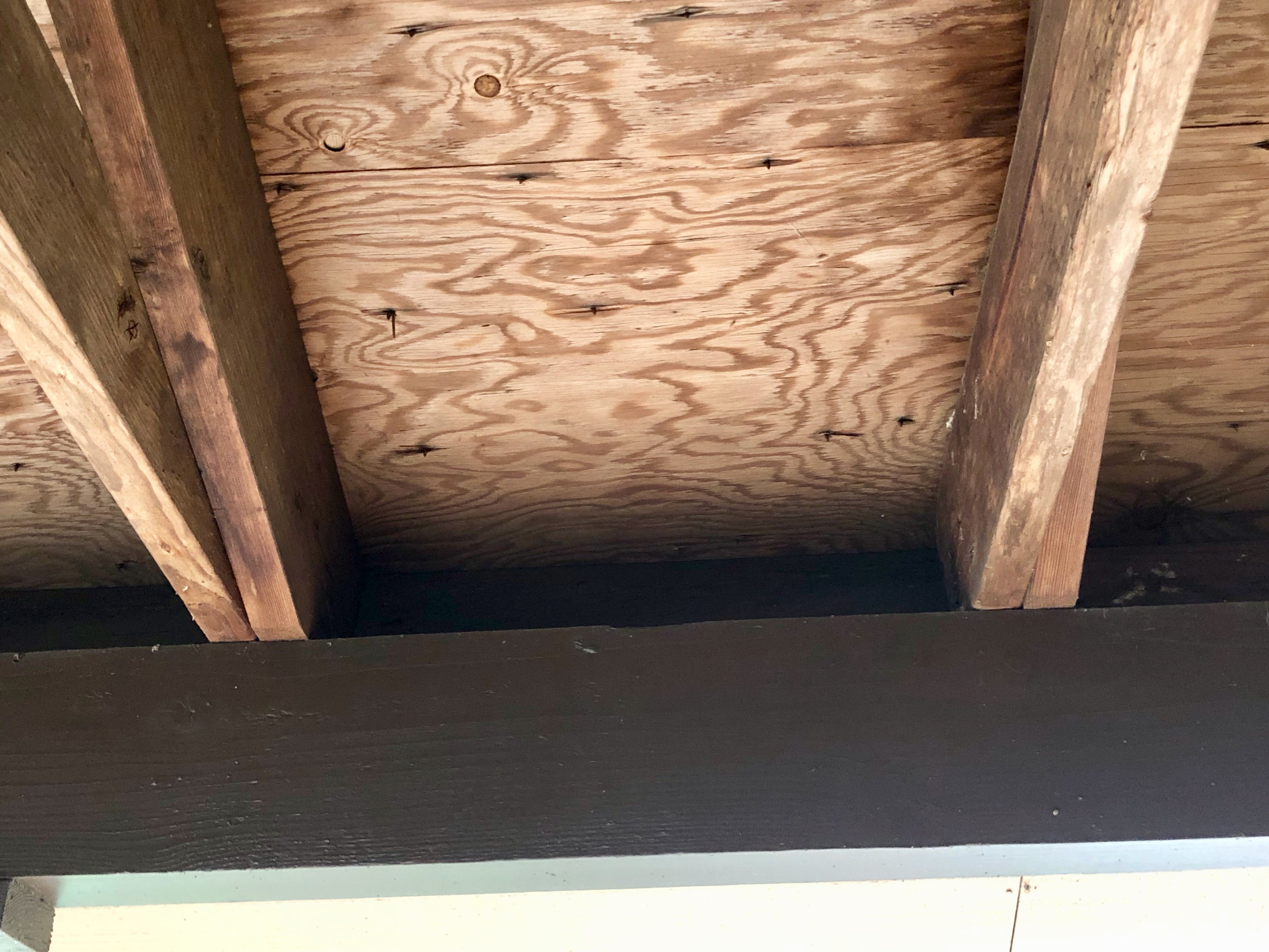 The absence being the removal of a nest from this area under our carport's roof. When you started pecking at the windows of our house a few weeks ago, I looked around and found the nest. I admit that I was the one who got a ladder and removed it, but it was my wife who took it into the woods and put it on a stump.