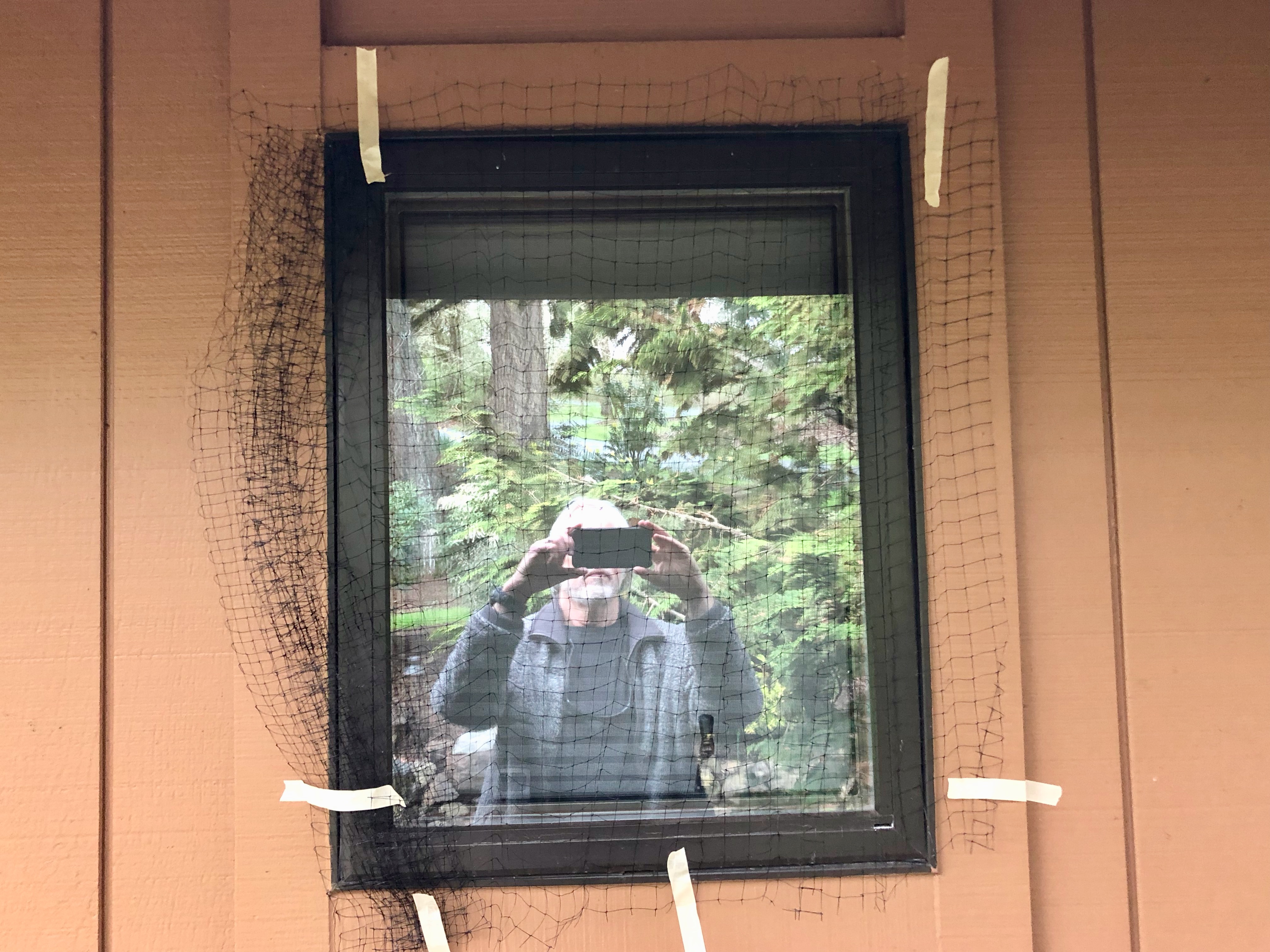 Lastly, I want to express my thanks for you leading me to make this addition to our house, albeit a temporary one. I certainly wouldn't call myself a handyman, but you helped me explore the fine art of using masking tape and netting to create a robin barrier over four windows that, while admittedly lacking in artistry, has a certain rustic flair to it.