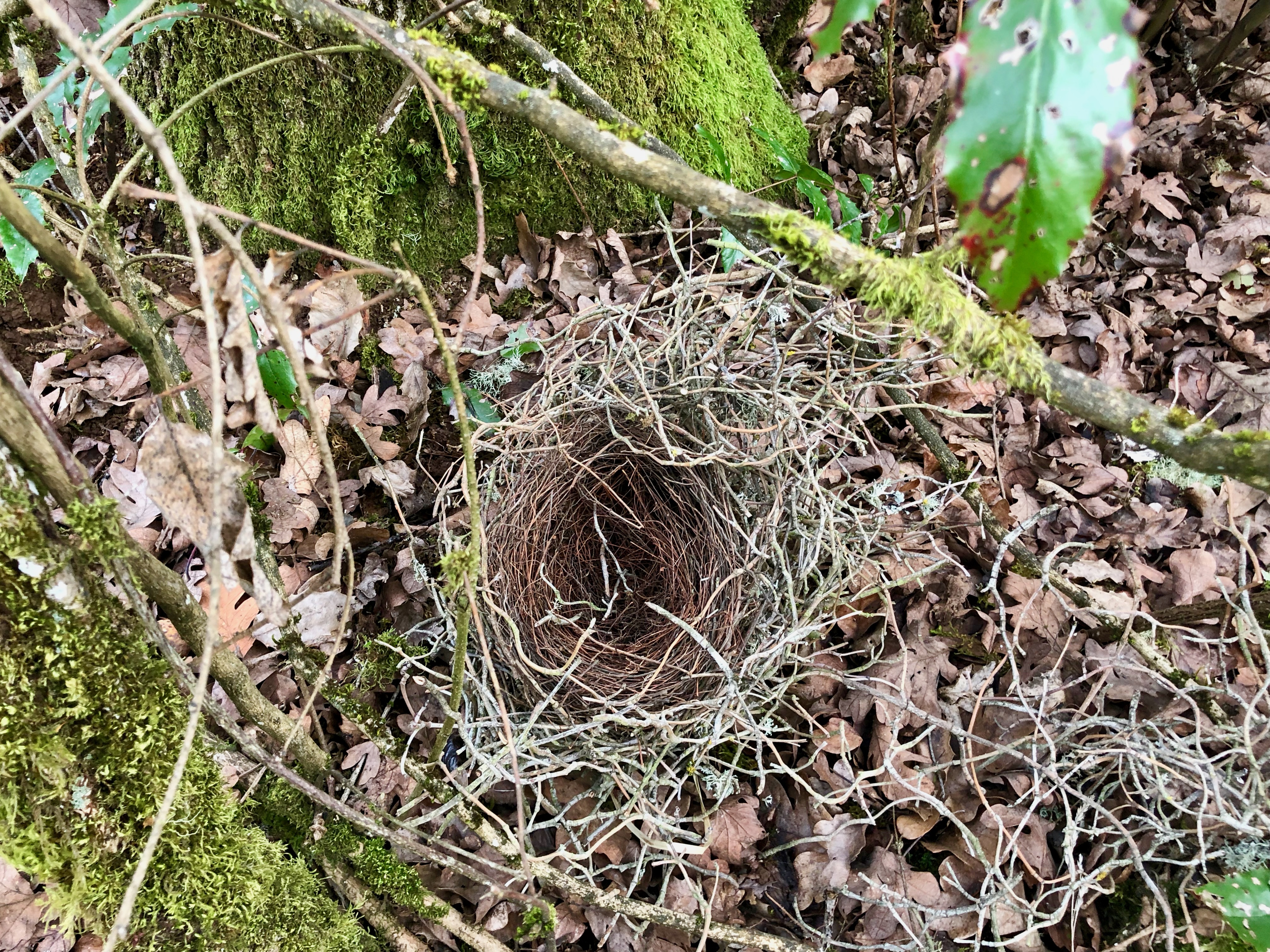 My wife believes a bluejay was contemplating this as a home, but decided to pass on it — maybe because it didn't have a three car garage, or fast broadband. At any rate, it's sitting at the base of an oak tree if you'd like to use twigs from it in your nest far away from our house, and my car. Oh, did you see the mention of far away?