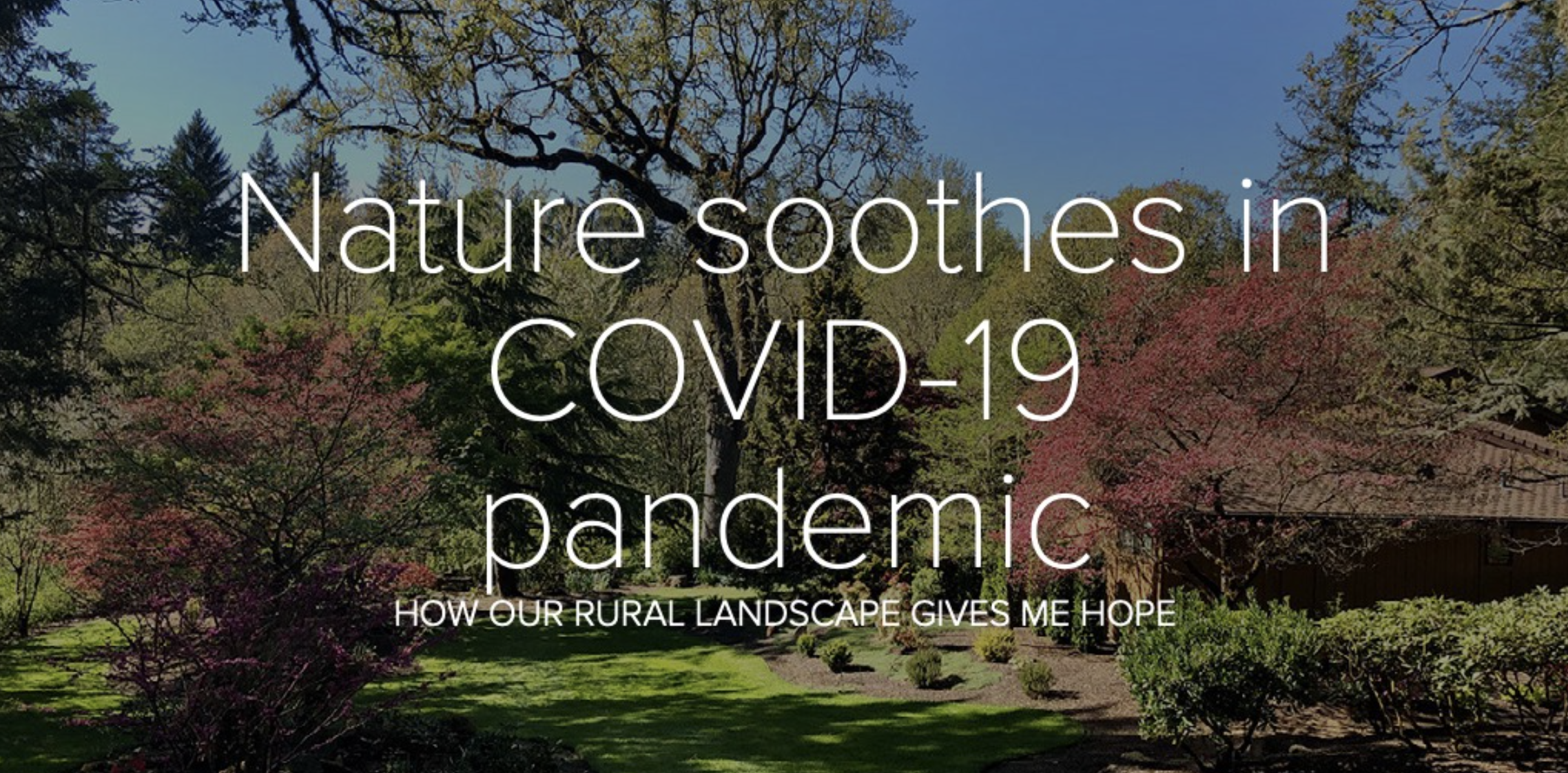 Working in our rural south Salem property yesterday, I realized that nature is a wonderfully soothing antidote to anxiety about the coronavirus crisis. So I took some photos of our spring-blooming yard and shared them in an Adobe Spark web page, along with some commentary.