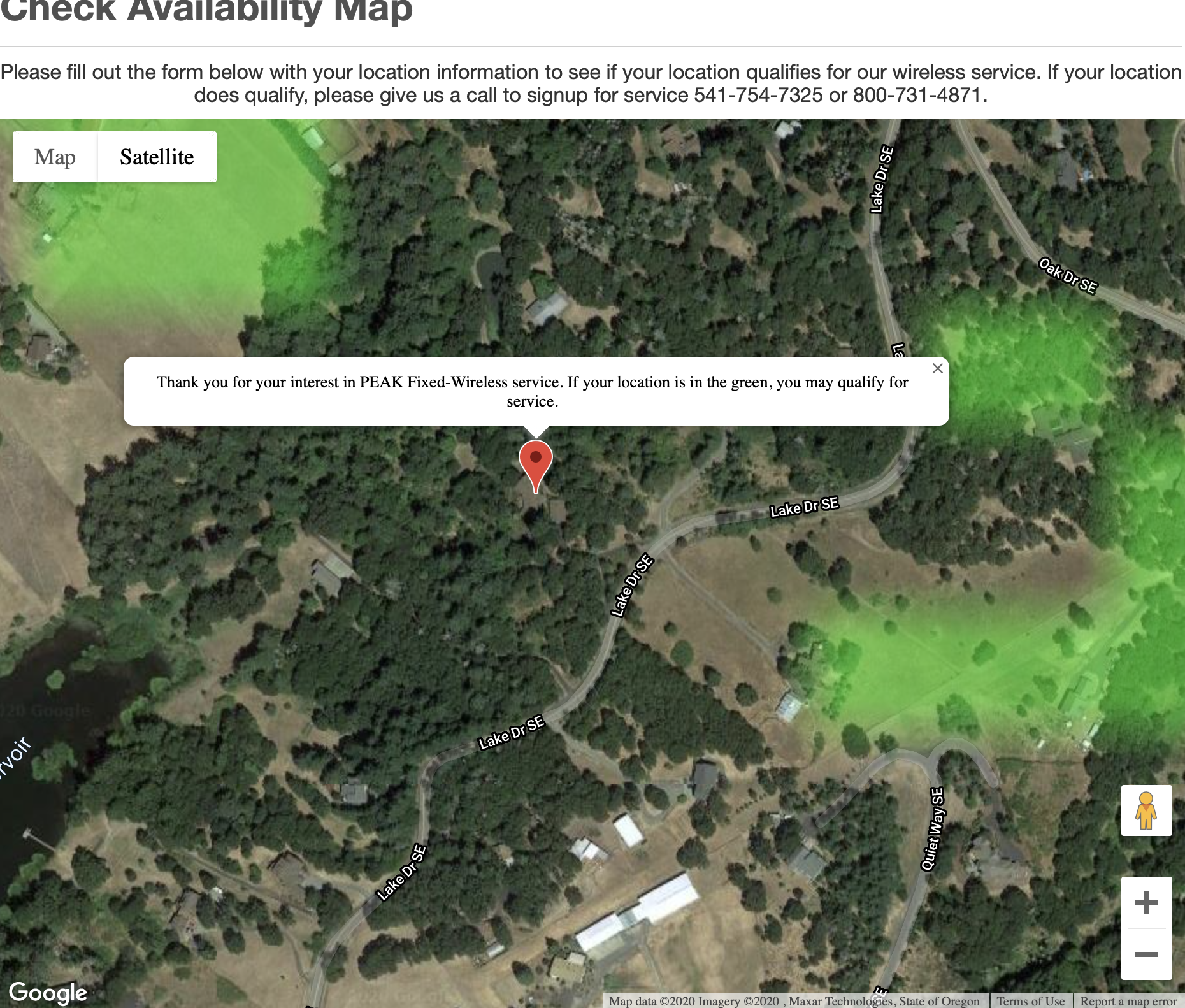 No luck. And today I got an online rejection from Peak Internet, another fixed wireless provider. Here's the message I got after supplying our address. "Thank you for your interest in Peak Fixed Wireless service. If your location is in green, you may qualify for service."