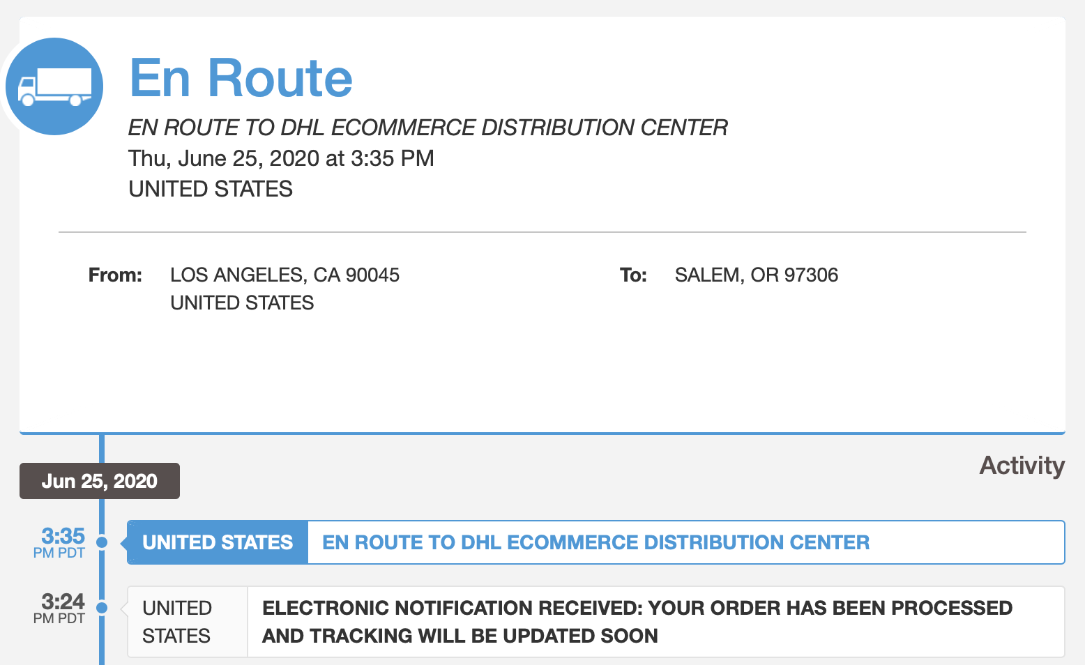 And this is the tracking information that never changes. Naturally I consider the claim from "Francis" that the parcel is moving despite no tracking updates to be a lie.