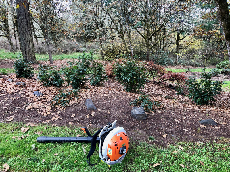 This came to mind today as I was going off to fight in the Leaf War. Since 1990 we've lived on a non-easycare property in rural south Salem. Our house is surrounded by large oak and fir trees.