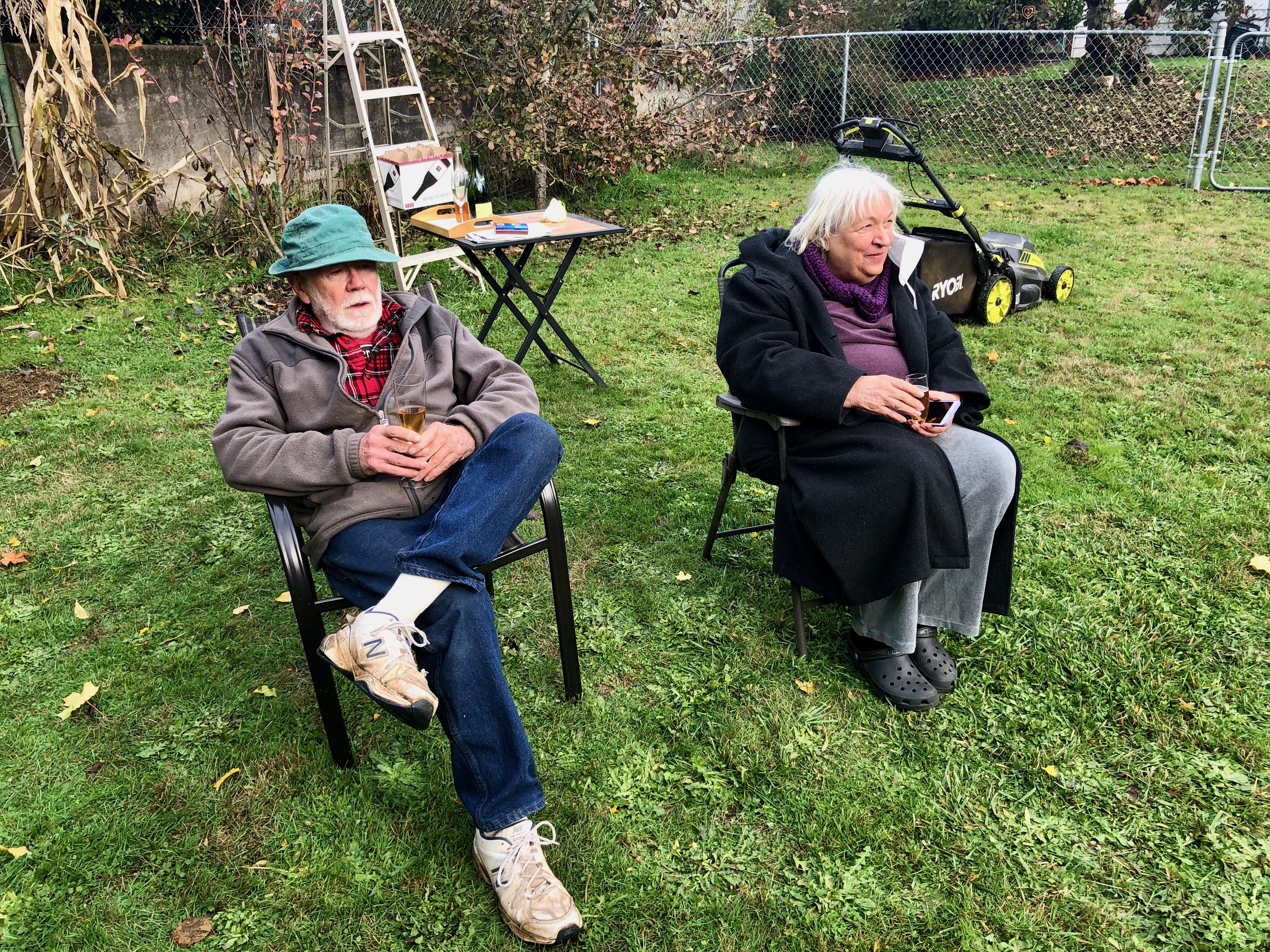 I'm glad that we were able to have an in-person meeting on the Saturday after election day. Thank you Rain Gods! Getting together in this fashion seemed much preferable to a Zoom get-together, our backup plan, which lacks the intimacy and communal feeling of a physical face-to-face gathering.