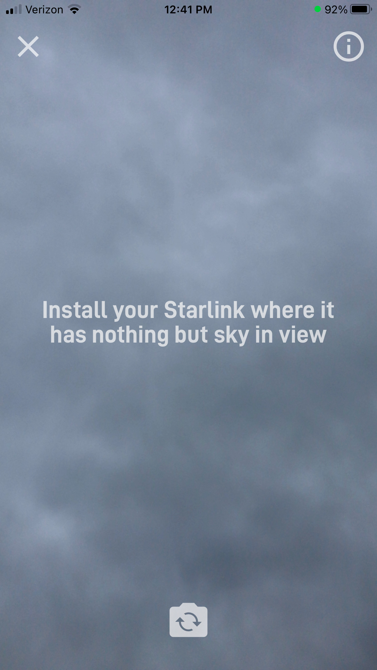 Brian, I think that what the app is doing in “Check for Obstructions” is showing you what part of the sky Dishy will look at in your location and what part it will not look at. You hold the phone where Dishy is going to go and tilt it around to see where the 100 degree wide circle in the sky is. Wherever the screen is black can be ignored. Wherever it shows not black, you check if it is clear sky or an obstruction. Just being able to point the camera and see a clear sky in one direction isn’t enough.