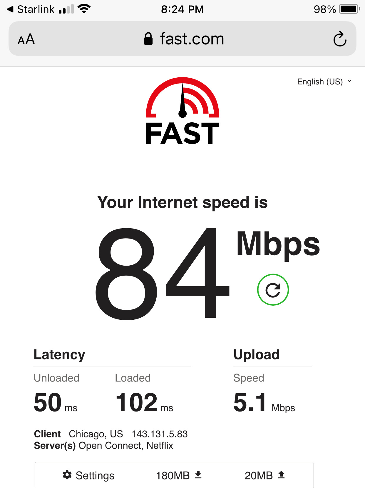 By the way, that 5 Mb iPhone photo just took 15 seconds to upload to Typepad, my blogging service. With DSL, I have to wait a couple of minutes for a photo to upload. At the moment Starlink has an upload speed of 5.1 Mbps, while our DSL usually is about .75 Mbps.